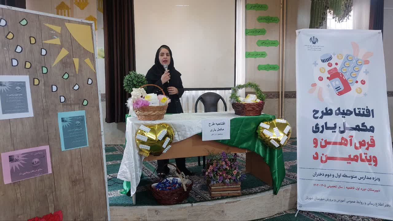 مراسم افتتاحیه برنامه مکملیاری آهن و ویتامین د ویژه دانشآموزان دختر دوره متوسطه اول؛ روز 28 مهر 1404 به صورت نمادین در مدرسه فاطمیه شهرستان شهریار برگزار شد.