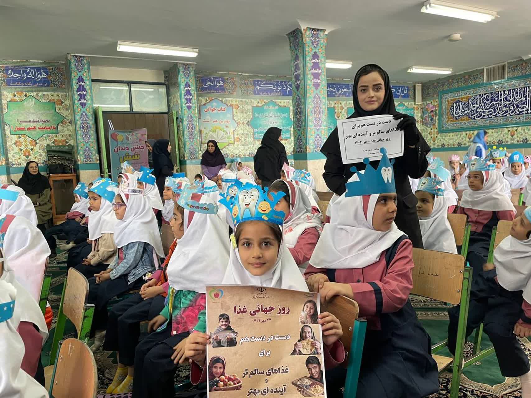 برگزاری پویش دهان و دندان و آموزش تغذیه سالم برای حفظ سلامت دندان در روز جهانی غذا برای دانش آموزان مدارس دخترانه