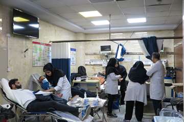 استقرار پایگاه سیار اهدای خون و مشارکت فعال همکاران در بیمارستان شهدای هفتم تیر
