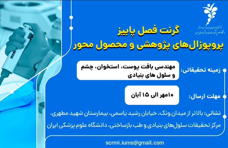 فراخوان پذیرش طرحهای پژوهشی سال 1404 مرکز تحقیقات سلولهای بنیادی و طب بازساختی